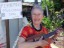 Chuck Hughes showing his steel guitar to festival guests.