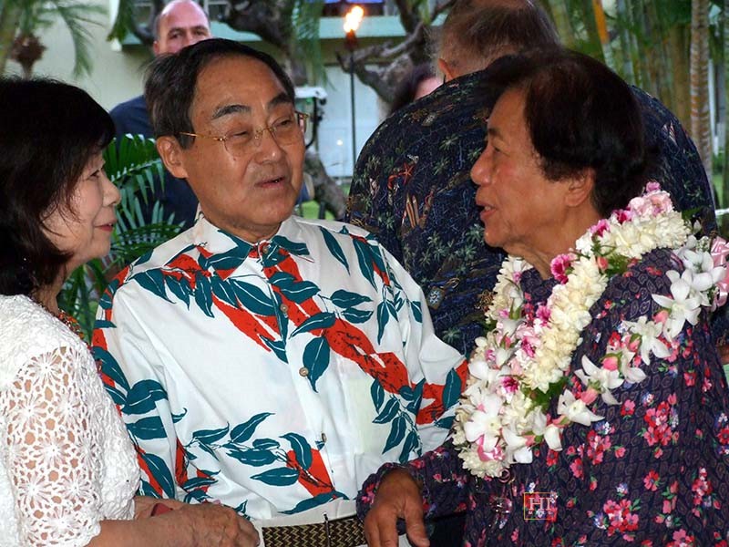 Mr. and Mrs. Naoto Nakamura chat with Mrs. Akaka.