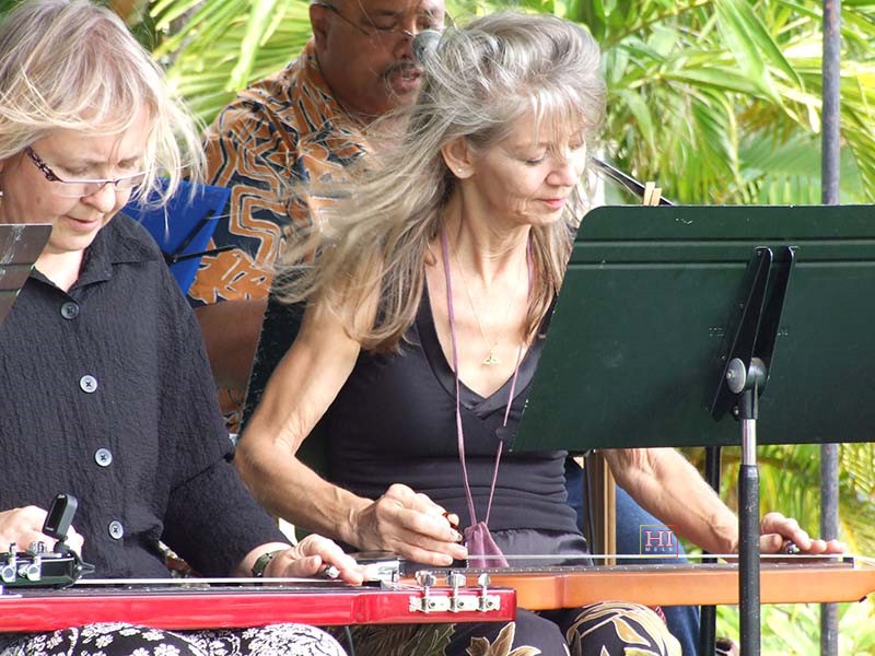 Saturday open stage sessions featured the students of Joel Katz's University of Hawaii-Maui College Hawaiian Steel Guitar Class.