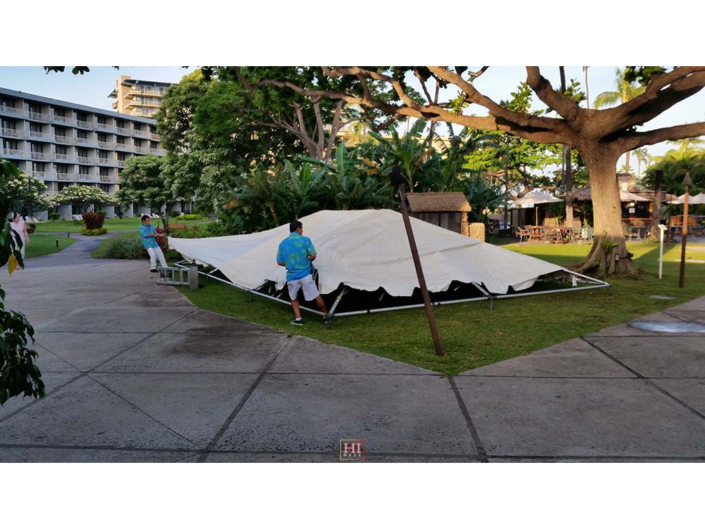 The festival information tent is going up.
