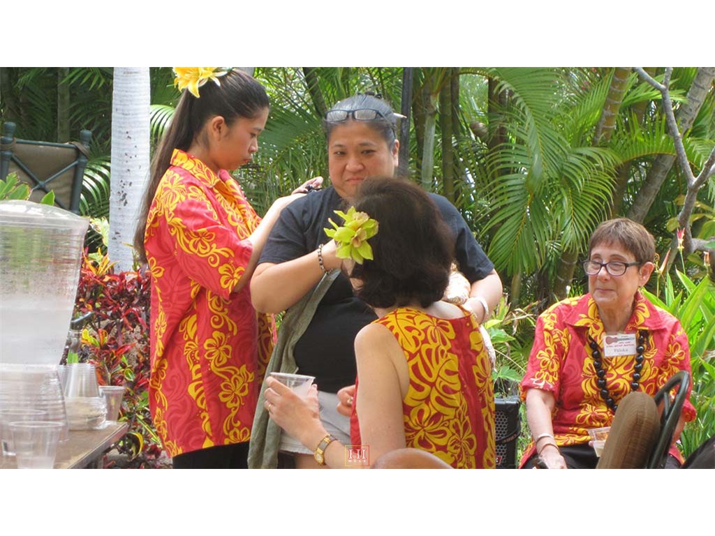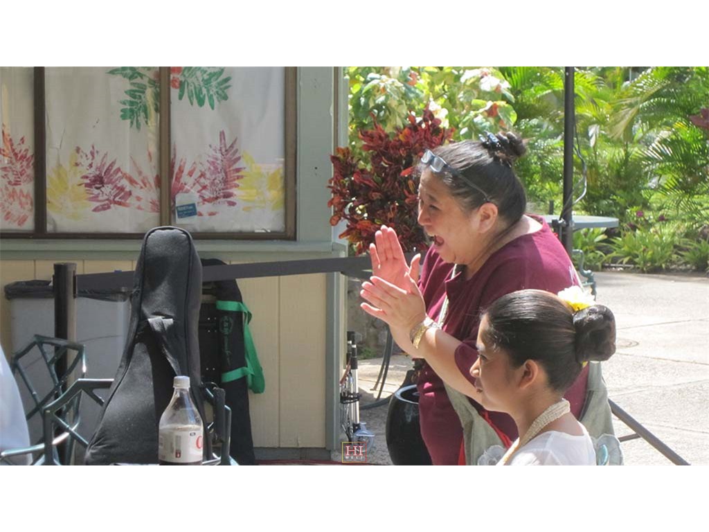 Saturday festival ho'olaulea guests included Wainani Kealoha with haku lei.