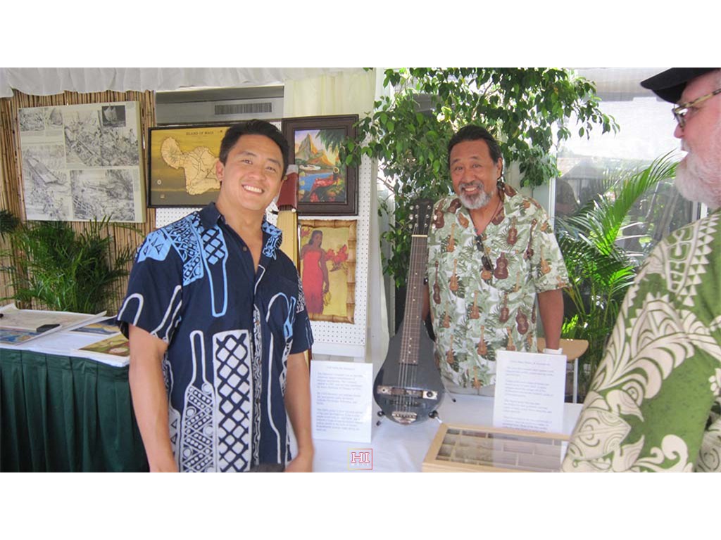 Featured performers Jeff Au Hoy and Geri Valdriz at the steel guitar exhibit booth.