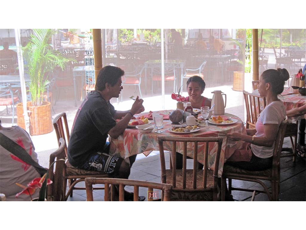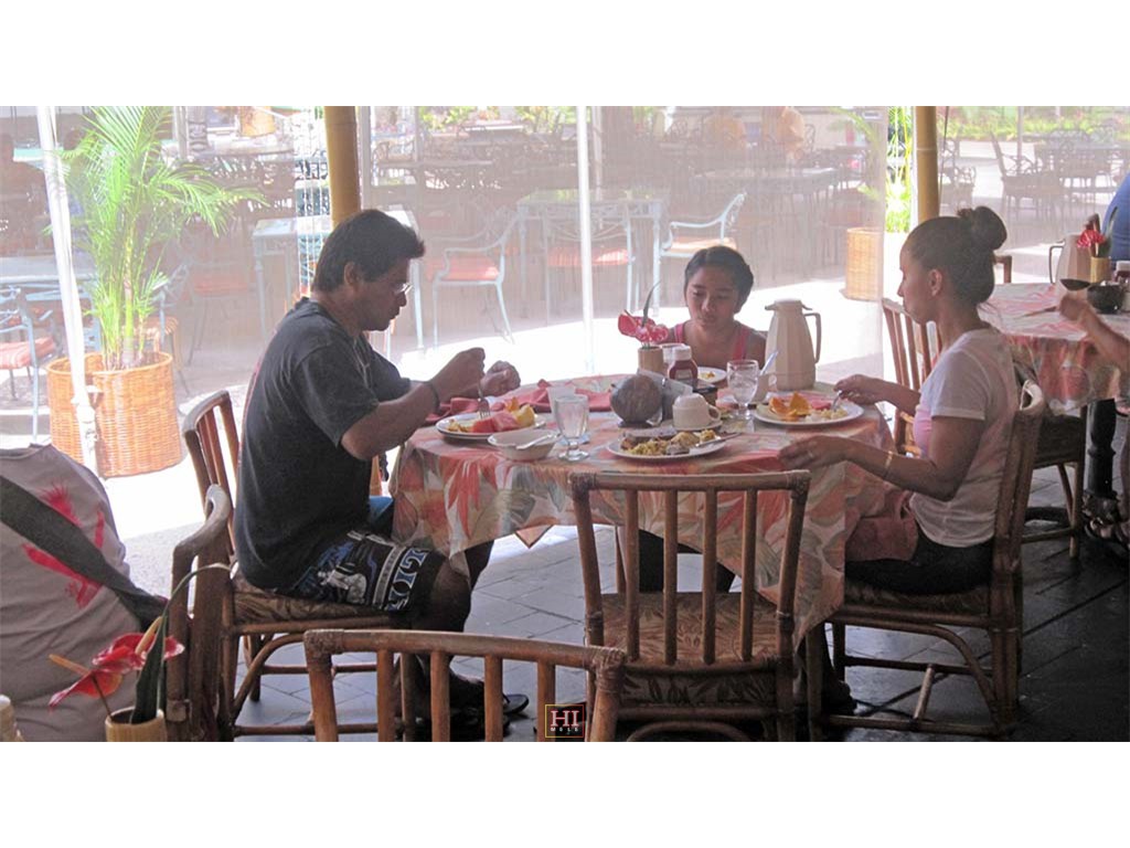 Breakfast with the Keawe 'Ohana: Dad Eric Keawe, granddaughter Mālie Lyman, and daughter Pomaima'i Lyman.