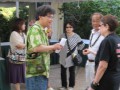 Emcee Kathy Collins chats with Tom Fairbanks with steelradio.com's Michael Scott and Lana Rosselli in the background.