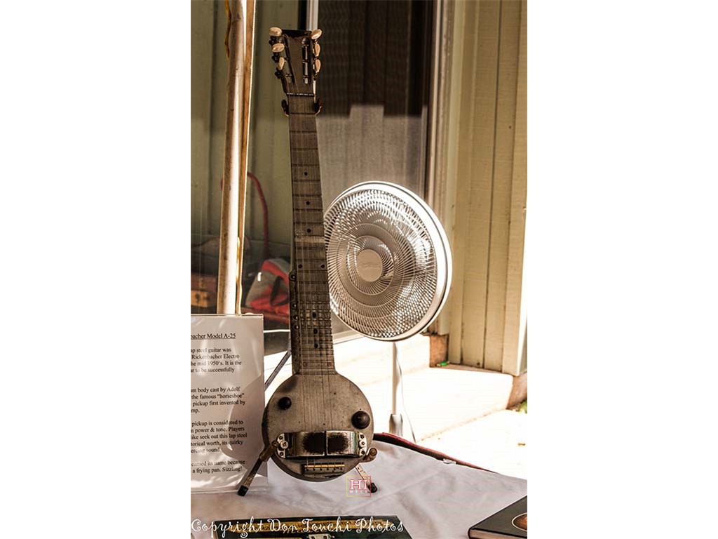 A vintage steel guitar exhibit was presented by steel guitarist Geronimo "Geri" Valdriz and included instruments from his personal collection.