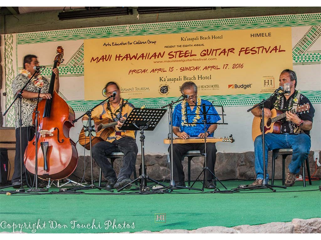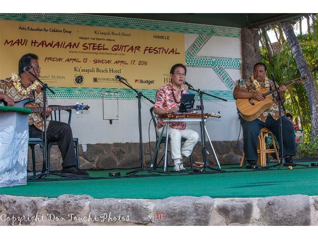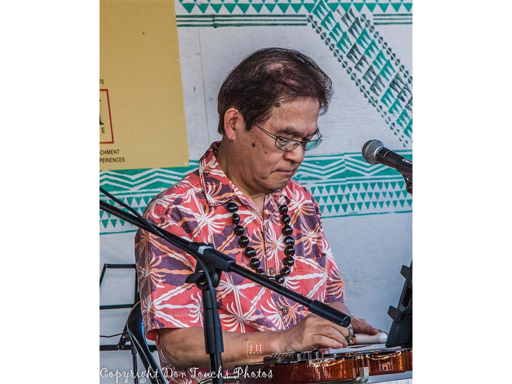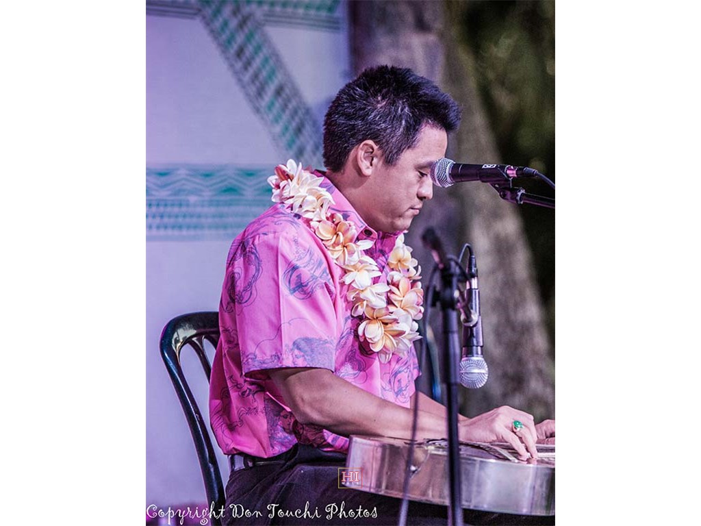 The Friday Evening Ho'olaulea featured Maui steel guitarists Joel Katz, Sam Ako, Geri Valdriz, Japan steel guitarists Tadashi Arakawa and Tetsuya Ishiyama, and Jeff Au Hoy and Alan Akaka.