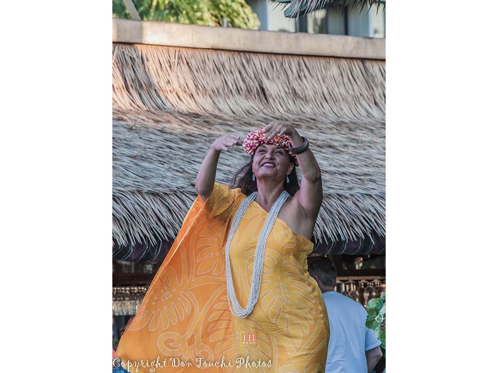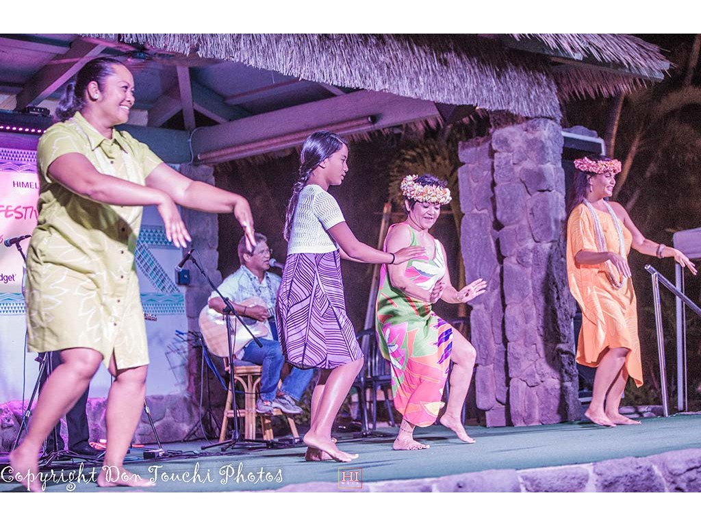 • Pono Li'i Murray and Kimo Kahoano doing hula to ''The Boy From Laupahoehoe'' while Maile Keawe Bryan and mom Leimomi Bacalso-Murray look on.