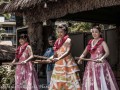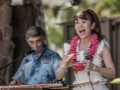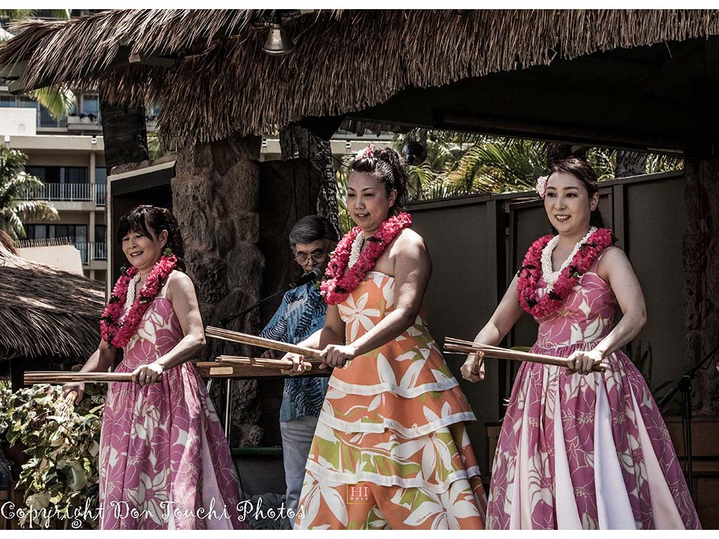 • Naoko Saito, Kaori Saito, and Hanae Kurumada dance with Puili (split bamboo sticks) as Makoto Shiraishi plays the steel guitar