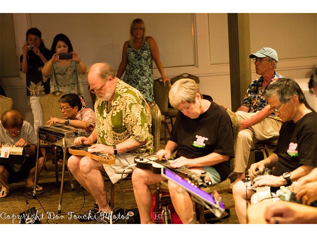 Front row steel guitarists include Yoshiyuki Endo (Japan), Jim Newberry (Washington), Vickie Van Fechtmann (Hawaii), Rebecca Woo (California), Dave ''DK'' Kolars (Illinois), and Shinichi Kakiuchi (Japan).