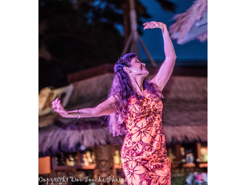 Duke Kaleolani Ching's daughter, Kumu Hula Kapua Hollands, dancing hula.