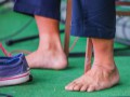 Geri always plays barefoot.