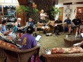 An unplanned hotel lobby pre-festival kanikapila was held on Thursday, April 27, 2017. The kanikapila was led by Alan Akaka and included graduates of the 2017 Hawaiian Steel Guitar Camp plus some festival guests Photos by Addison Ching.