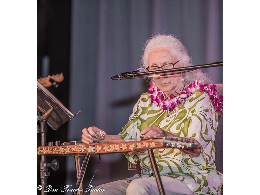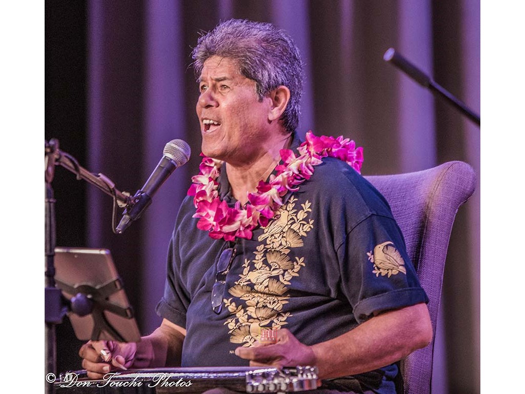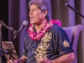 Kathy Collins watches as Alan Akaka thanks the audience for honoring his dad. Photo by Addison Ching.