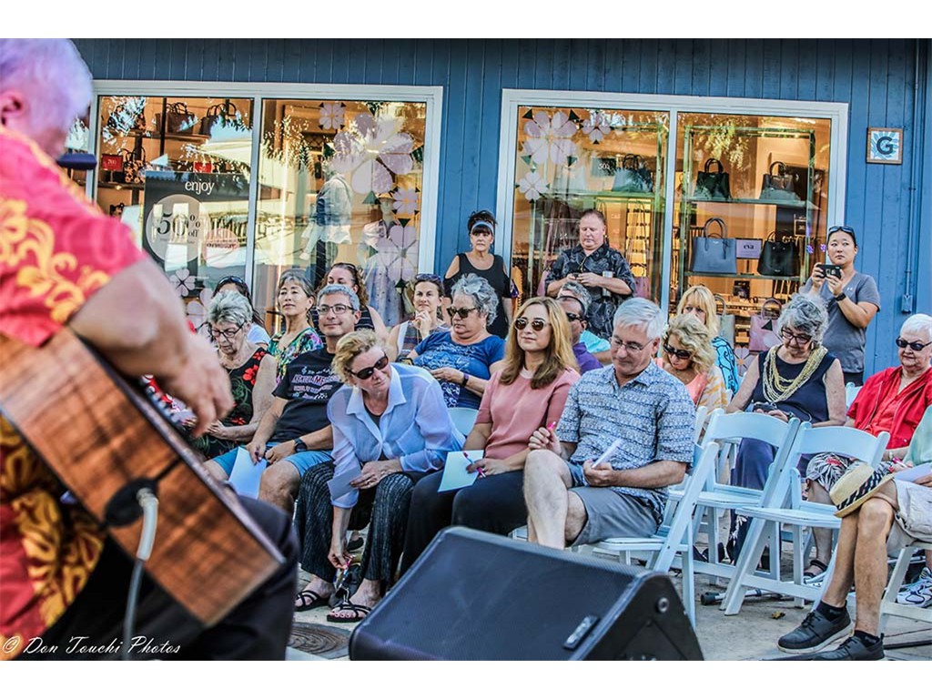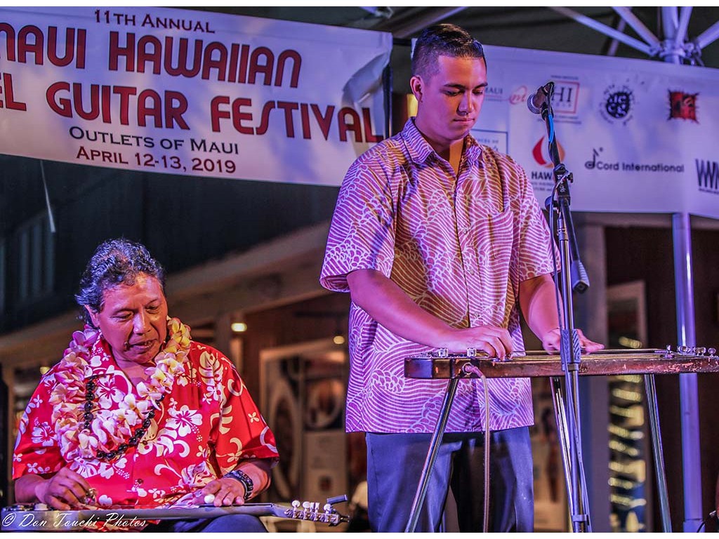 The Saturday evening main program was held at the Outlets of Maui outdoor stage and included NextGen steel guitarists and steel guitarists Geri Valdriz, Kapono Lopes, Alan Akaka, Greg Sardinha, and Bobby Ingano.
