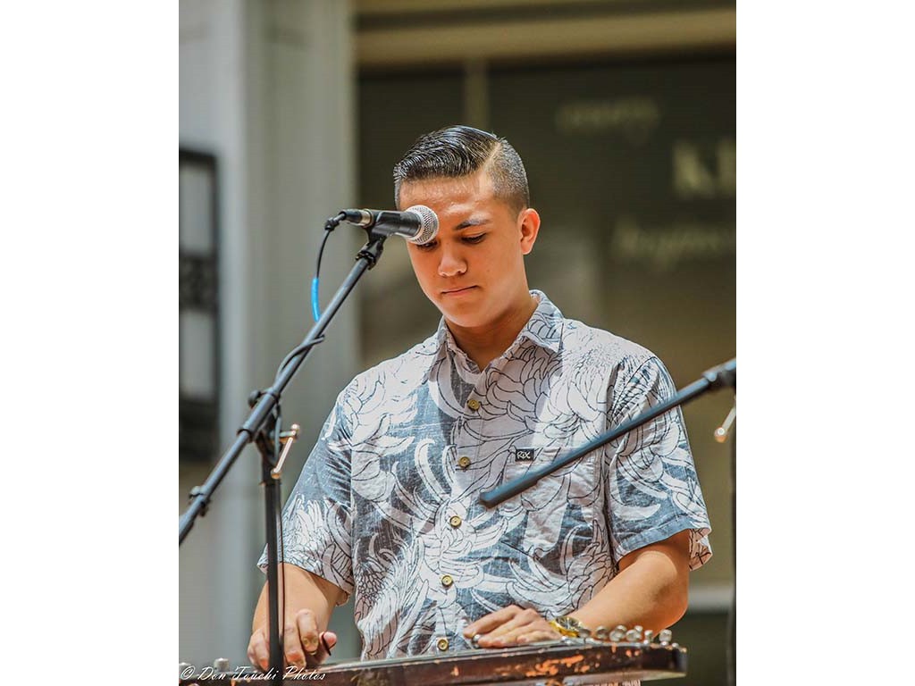 • Ke Kula Mele Hawaiʻi NextGen steel guitarists and musicians with Addison Ching and Alan Akaka.