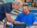 • Alan Akaka assists Daniel Tremblay at the demonstration desk.