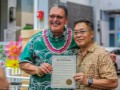 • Mayor Victorino and Alan Akaka with the proclamation.