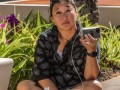 Tante Urban, owner of Tante's Island Cuisine. Tanteʻs was one of the restaurants visited by the group.