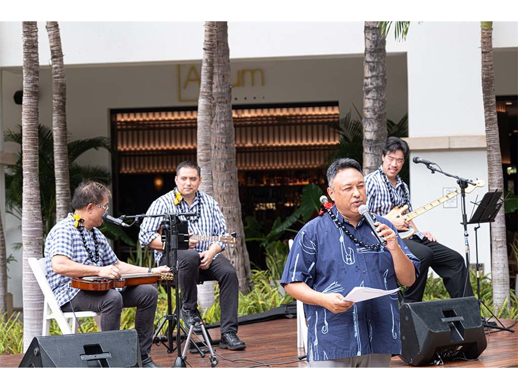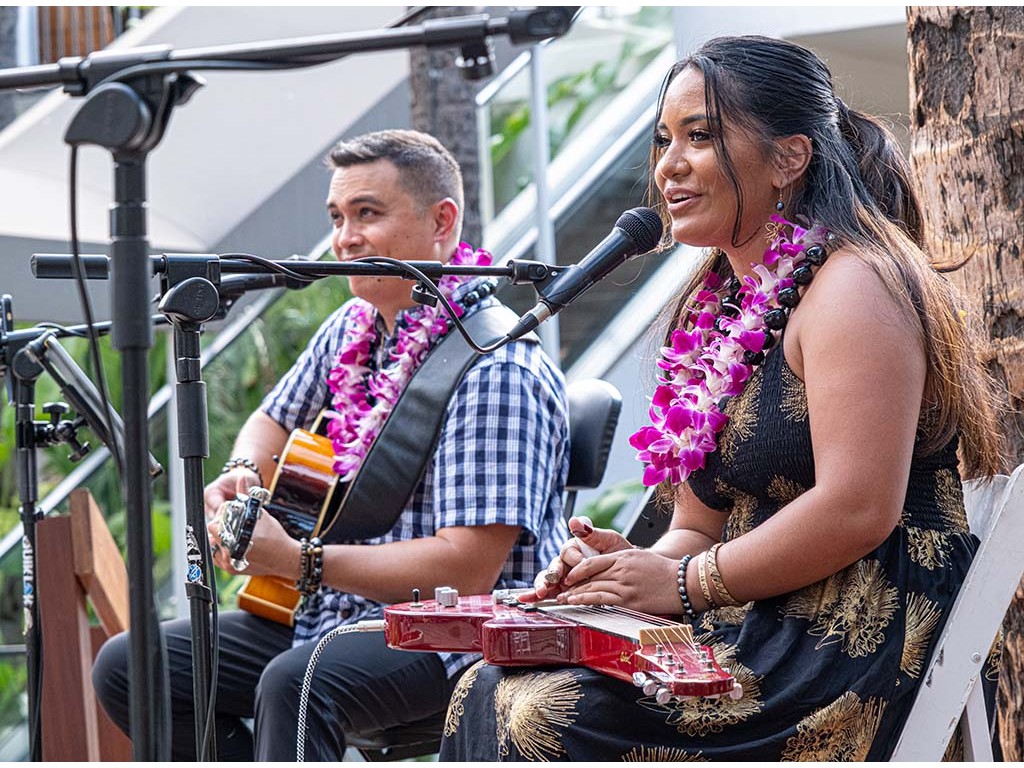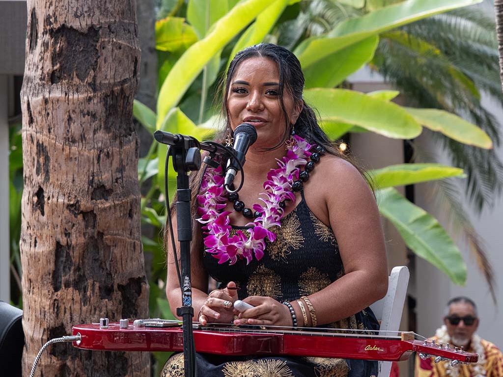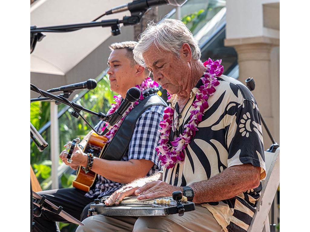 Saturday's Ho‘olaule‘a concert featured O‘ahu steel guitarists Alan Akaka, Devin Nakahara, Mālie Lymnan, Maui steel guitarists Joel Katz, Konapiliahi Lau, and Geronimo "Geri" Valdriz, and NextGEN steel guitarists Hiipoi Lindsey and Isaac Woodward. Backup musicians included David Woodward, Alan Akaka, Kaipo Lindsey, and Dylan Nakahara.