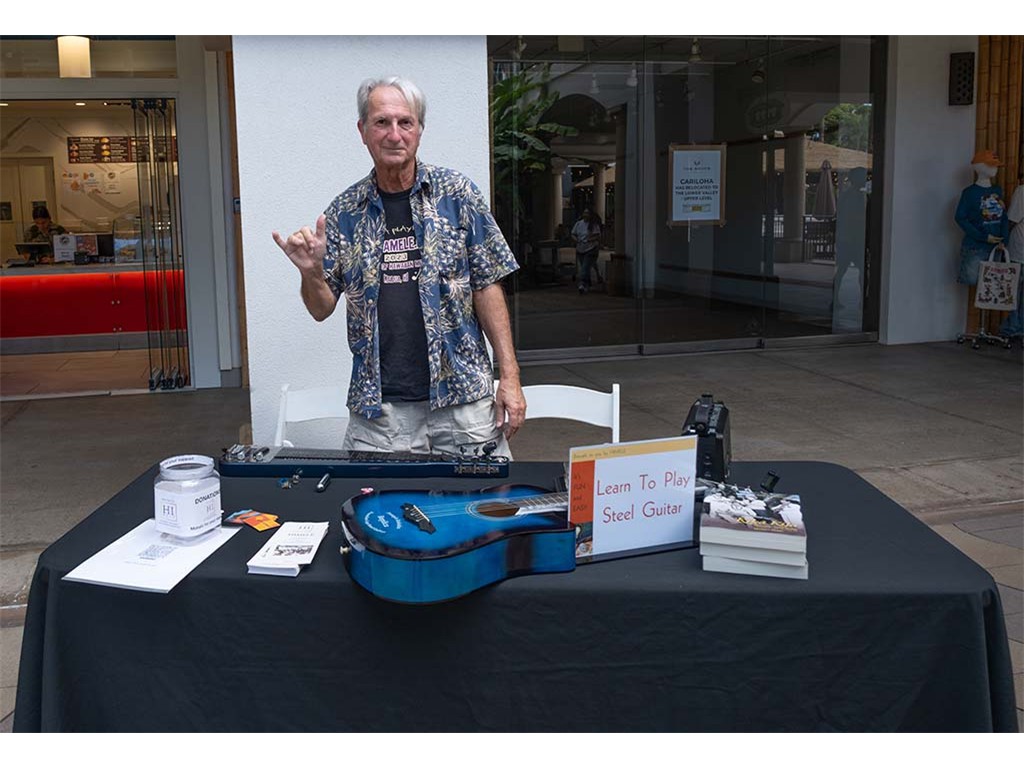 Another festival guest interested in learning about the steel guitar.