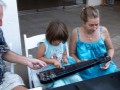The hands-on experience table was very popular among festival guests. Dan "Danny Kila" Tremblay provided steel guitar information and hands-on training to those who stopped by his table.