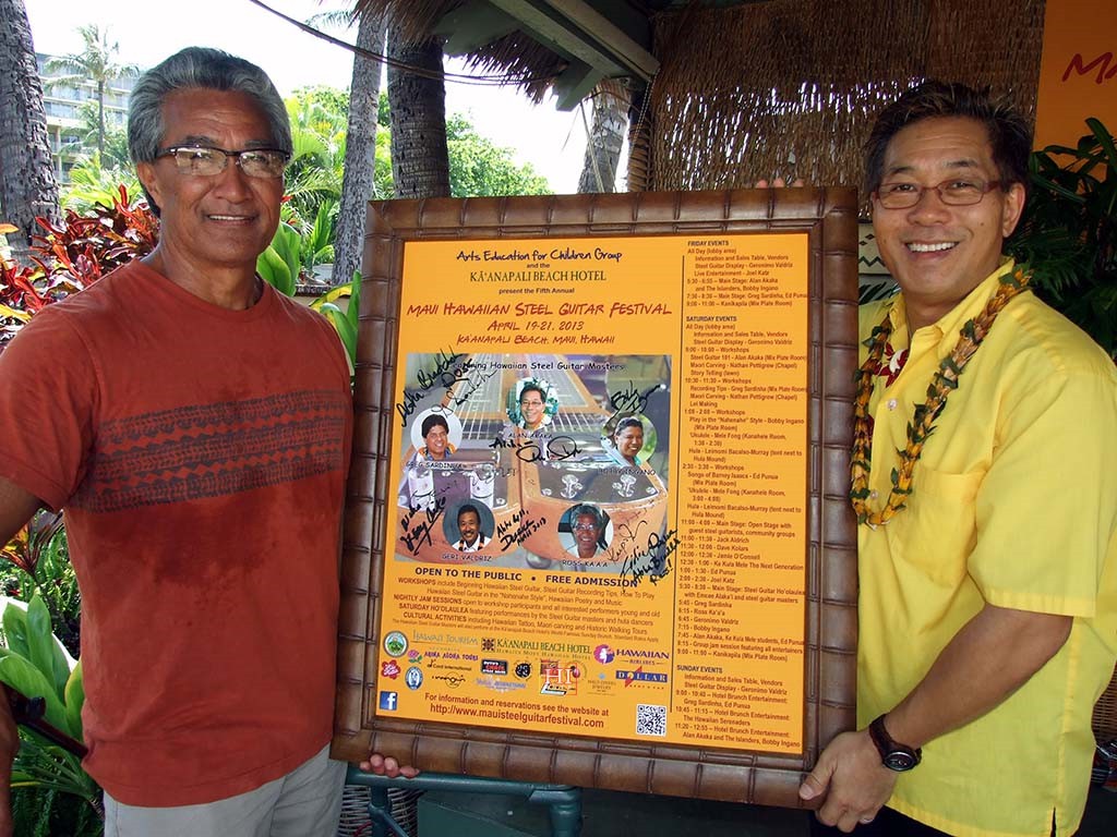 Ross Ka'a'a and Alan Akaka with the AECG archives poster.