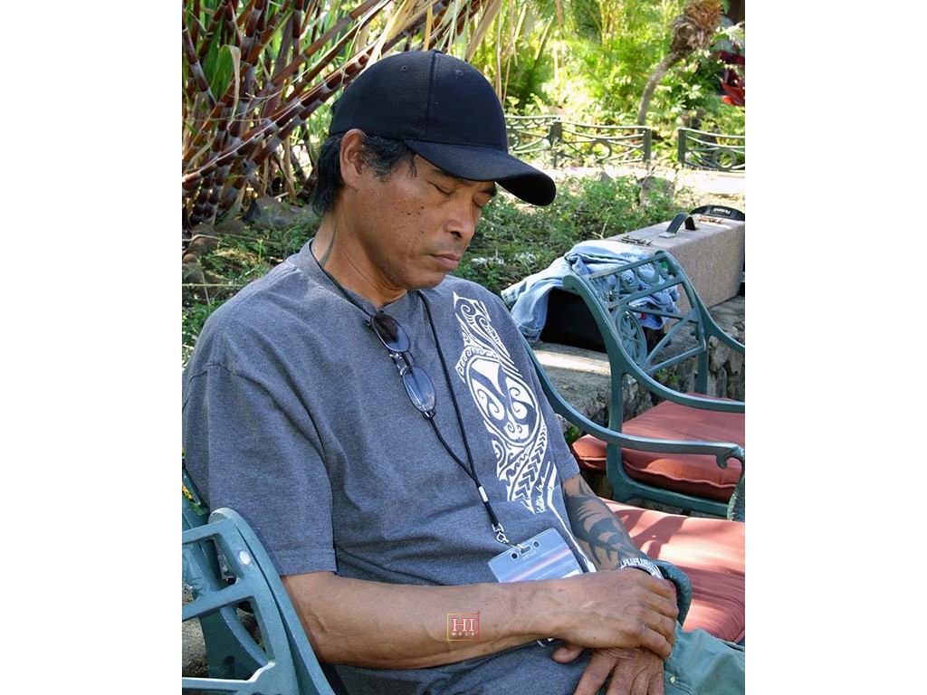 • Ronald Tolentino taking a break between video shoots.