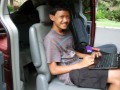 Sound engineer David Namakura with assistant Jesse Alpuro.