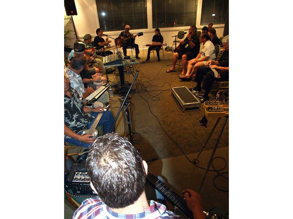 Featured performers joined other festival musicians and festival attendees in an old-fashioned backyard jam session. The kanikapila was filled with others just coming to see and hear the impromptu performances which also included vocal and hula selections.