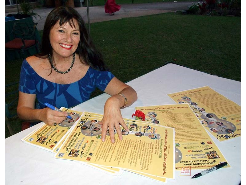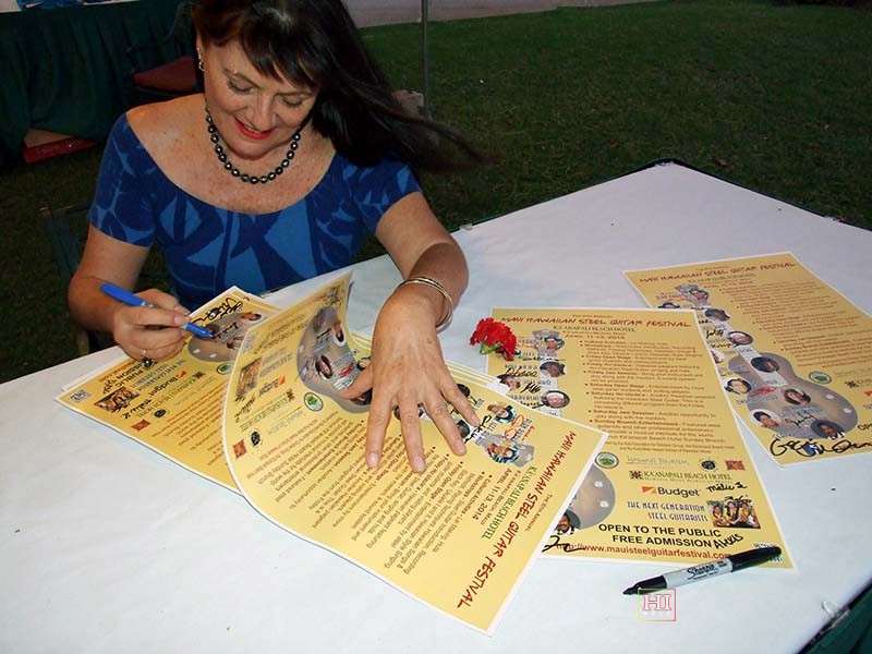 Owana Salazar personalizing the souvenir festival poster.