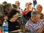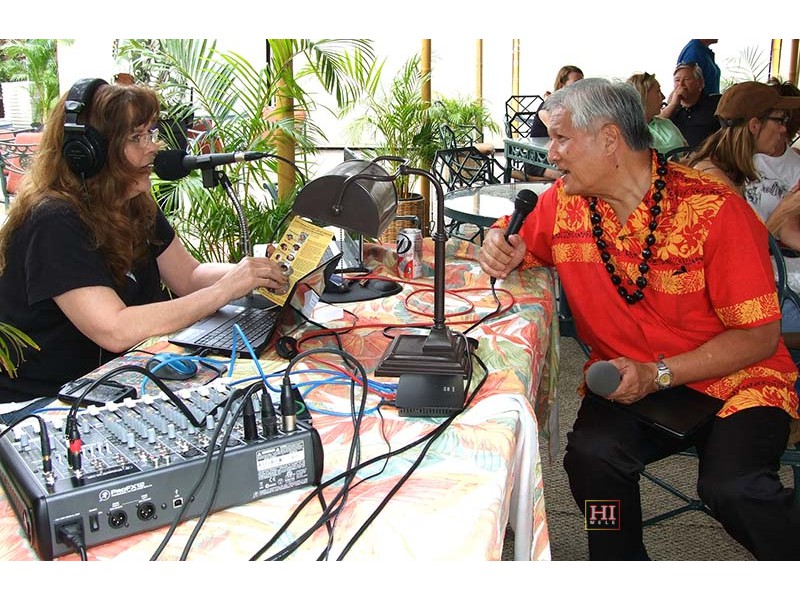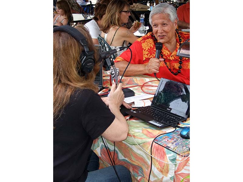 Perplexed at the festival information booth with Glen Keliikoa, Patricia Kuwaye, Louise Lambert, Joel Katz, Alan Akaka, and Addison Ching