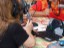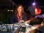 Chuck Hughes showing his steel guitar to festival guests.