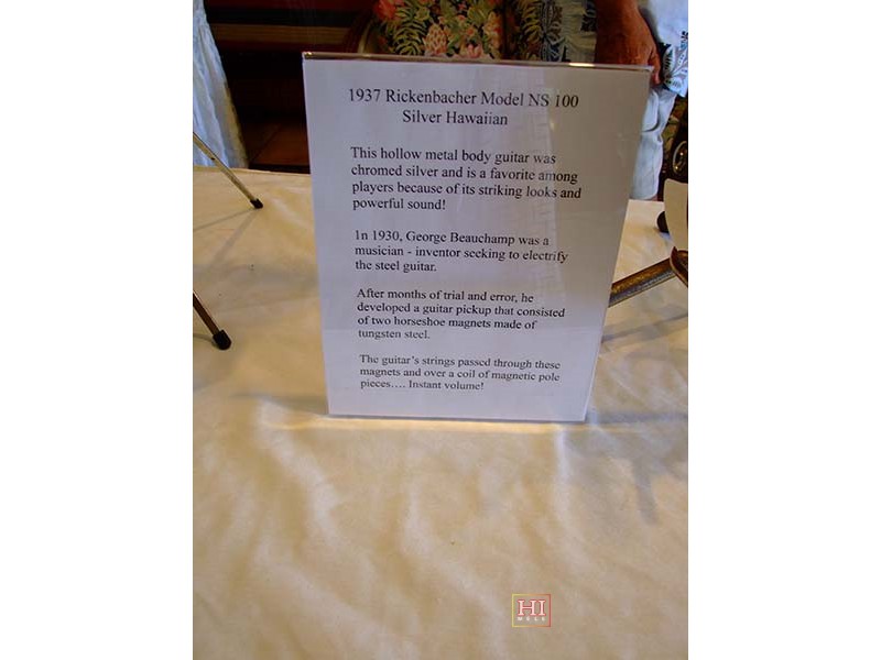 Information sheet for the 1937 Rickenbacher NS 100 Silver Hawaiian.