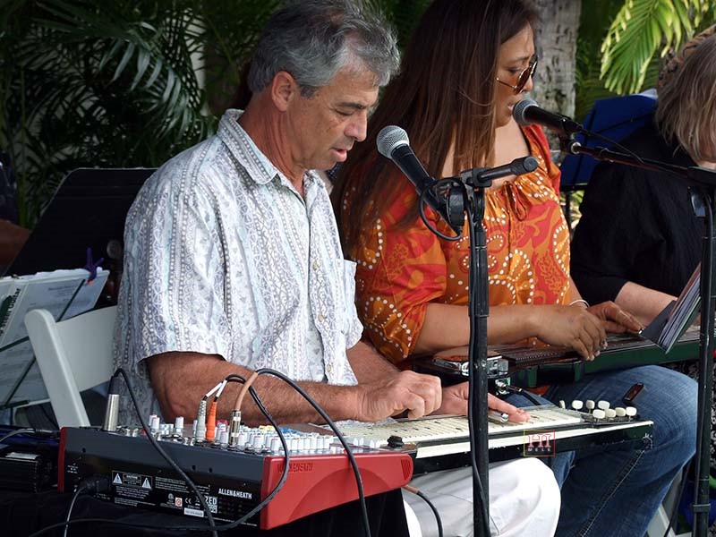Saturday open stage sessions featured the students of Joel Katz's University of Hawaii-Maui College Hawaiian Steel Guitar Class.