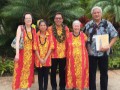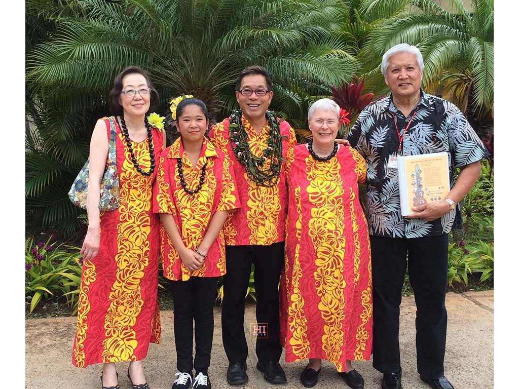 Ke Kula Mele Hawaii represent. From left: Noriko Tomita (Japan), Alexis Tolentino, Alan Akaka, Gale Warshawsky, and Addison Ching. Photo by Alan Akaka.