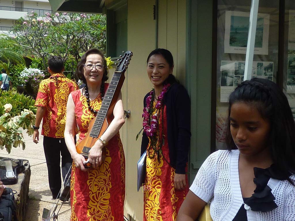 Getting ready to perform are Noriko Tomita and Eriko Ukita from Japan and Mālie Lyman. Photo by Alan Akaka.