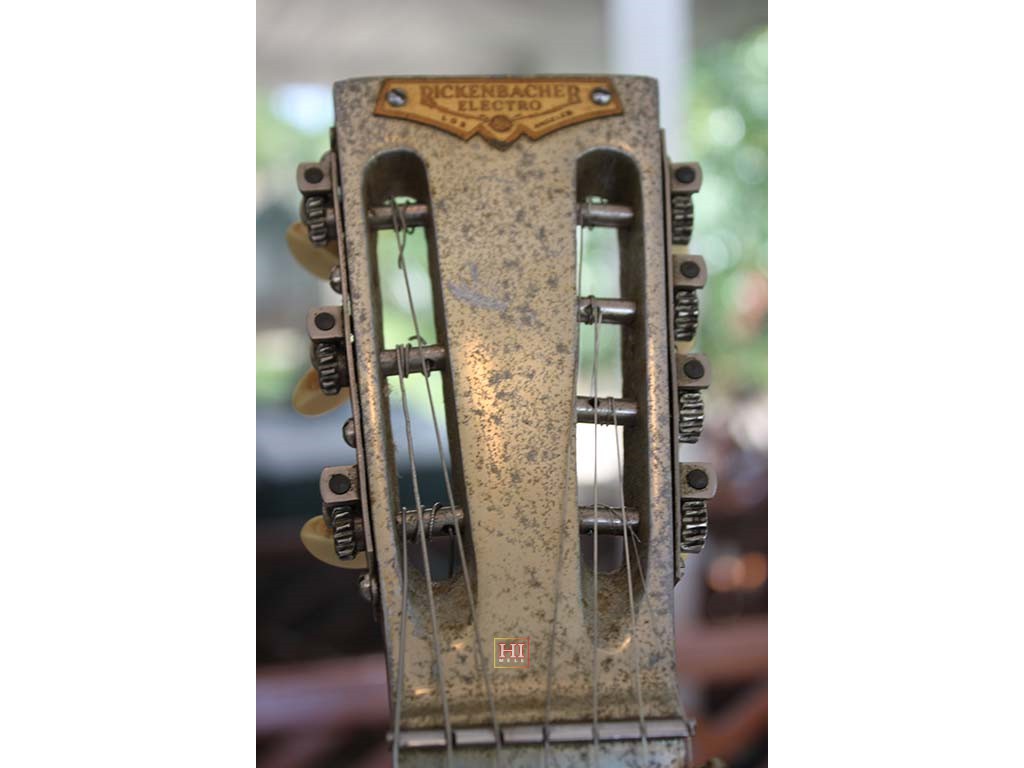 Headstock of a vintage Rickenbacher frypan steel guitar Photo by Jenny Greene, Ka'anapali Beach Hotel.