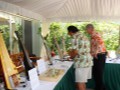 Geri Valdriz and assistant Don Mitsuyuki at the exhibit booth. Photo by Addison Ching.