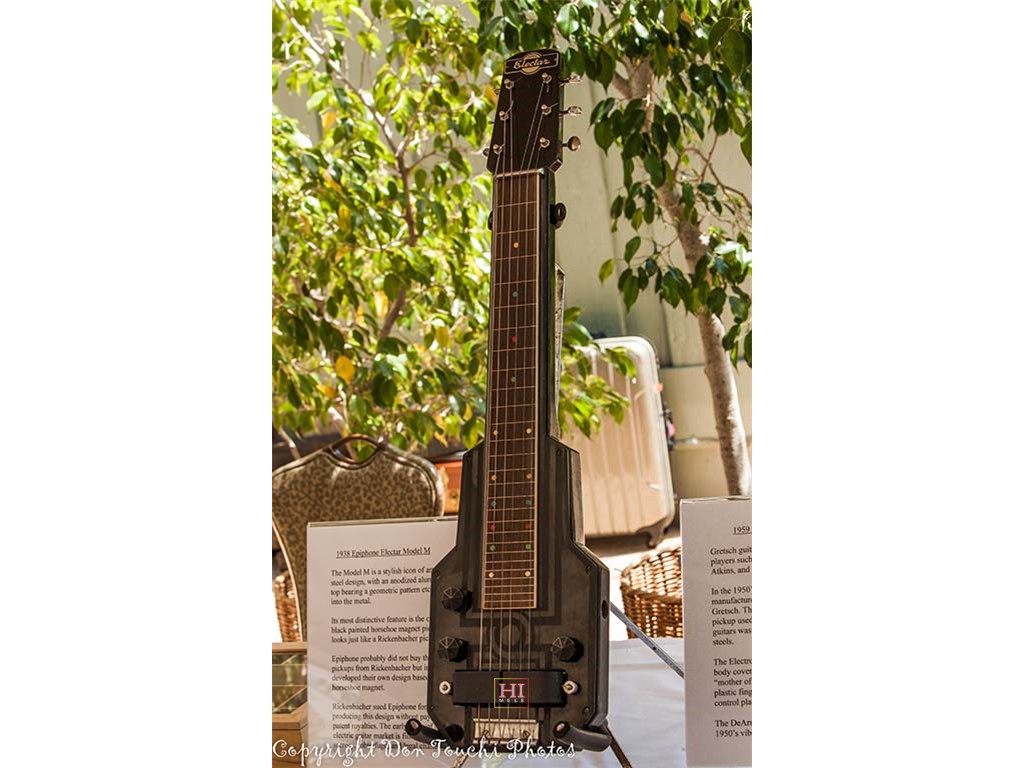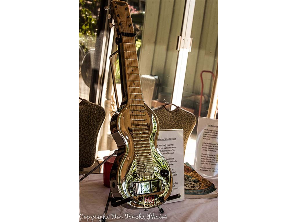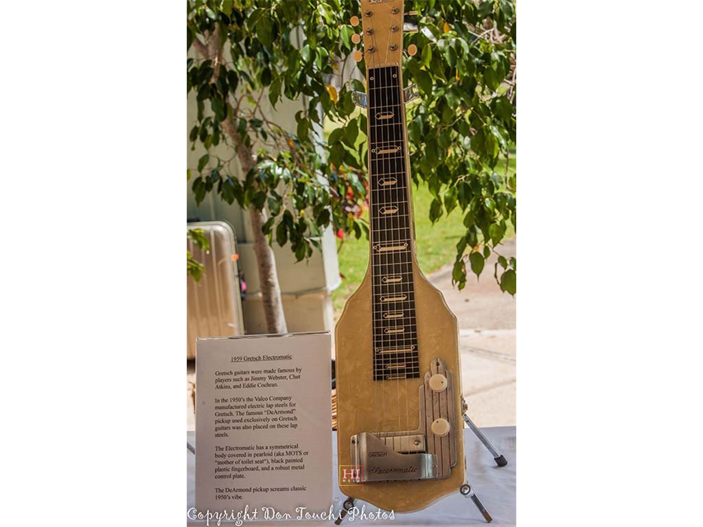 A vintage steel guitar exhibit was presented by steel guitarist Geronimo "Geri" Valdriz and included instruments from his personal collection.