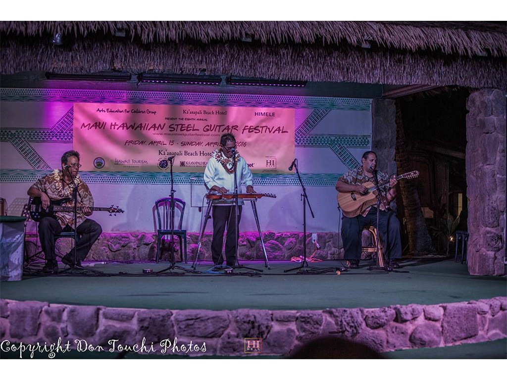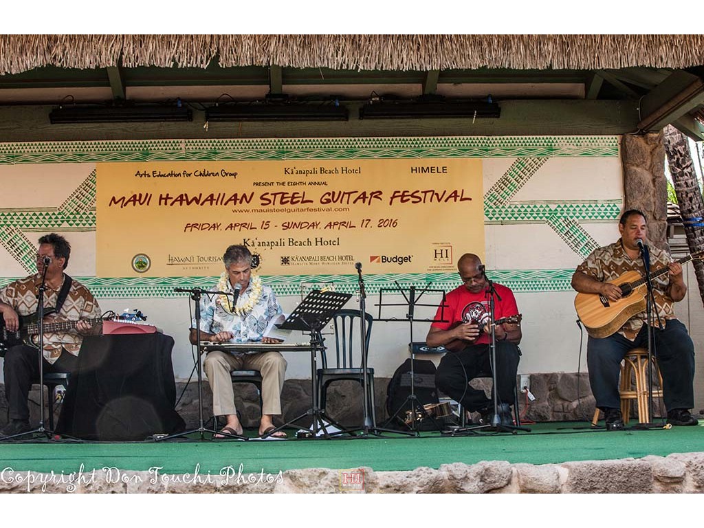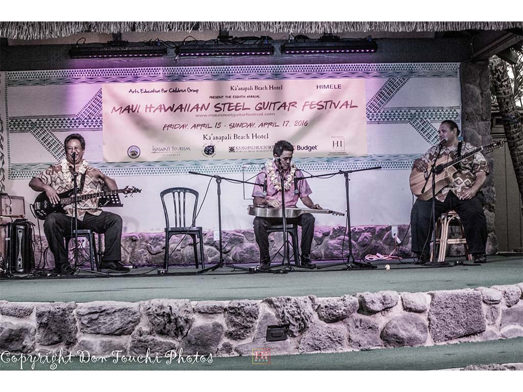 The Friday Evening Ho'olaulea featured Maui steel guitarists Joel Katz, Sam Ako, Geri Valdriz, Japan steel guitarists Tadashi Arakawa and Tetsuya Ishiyama, and Jeff Au Hoy and Alan Akaka.