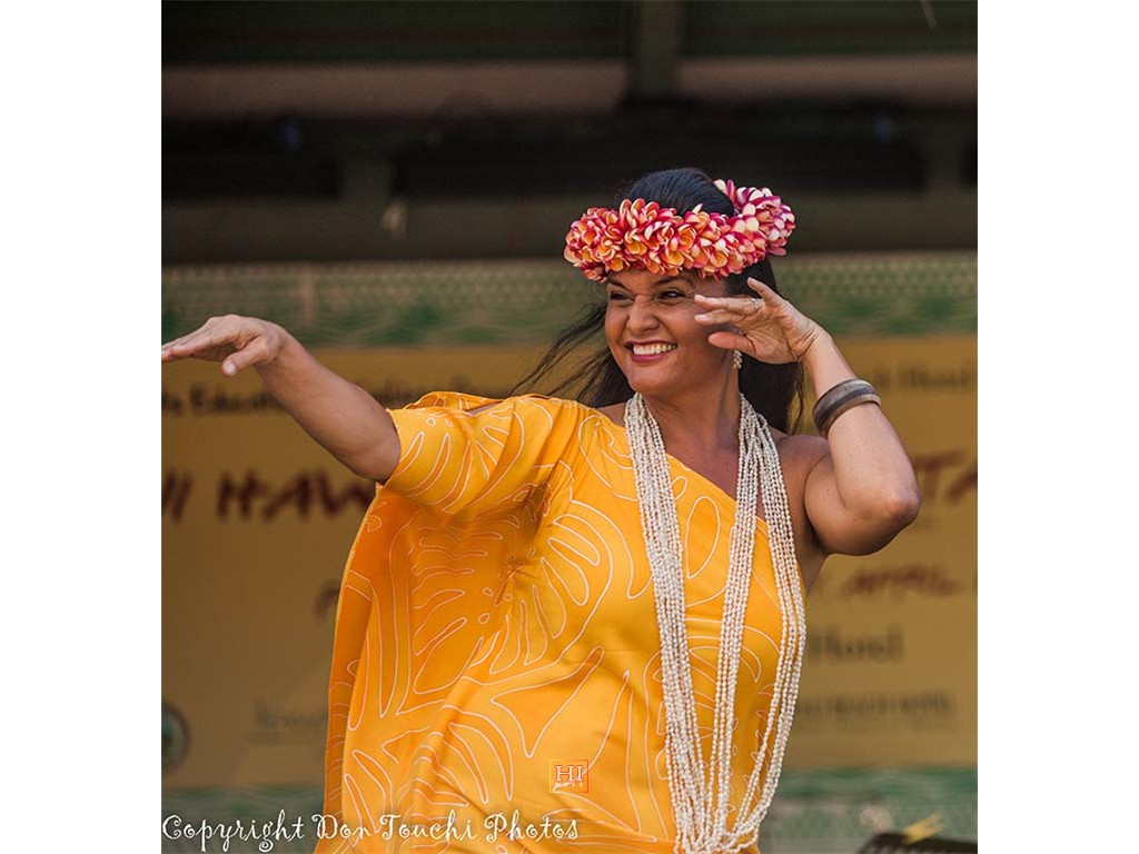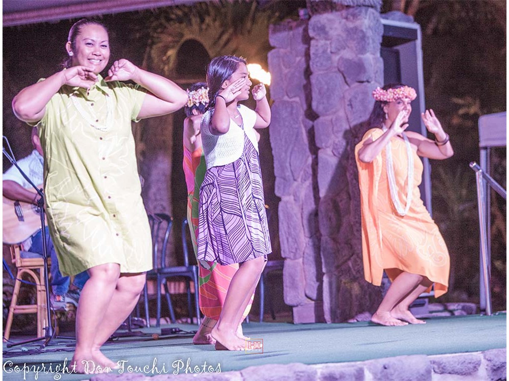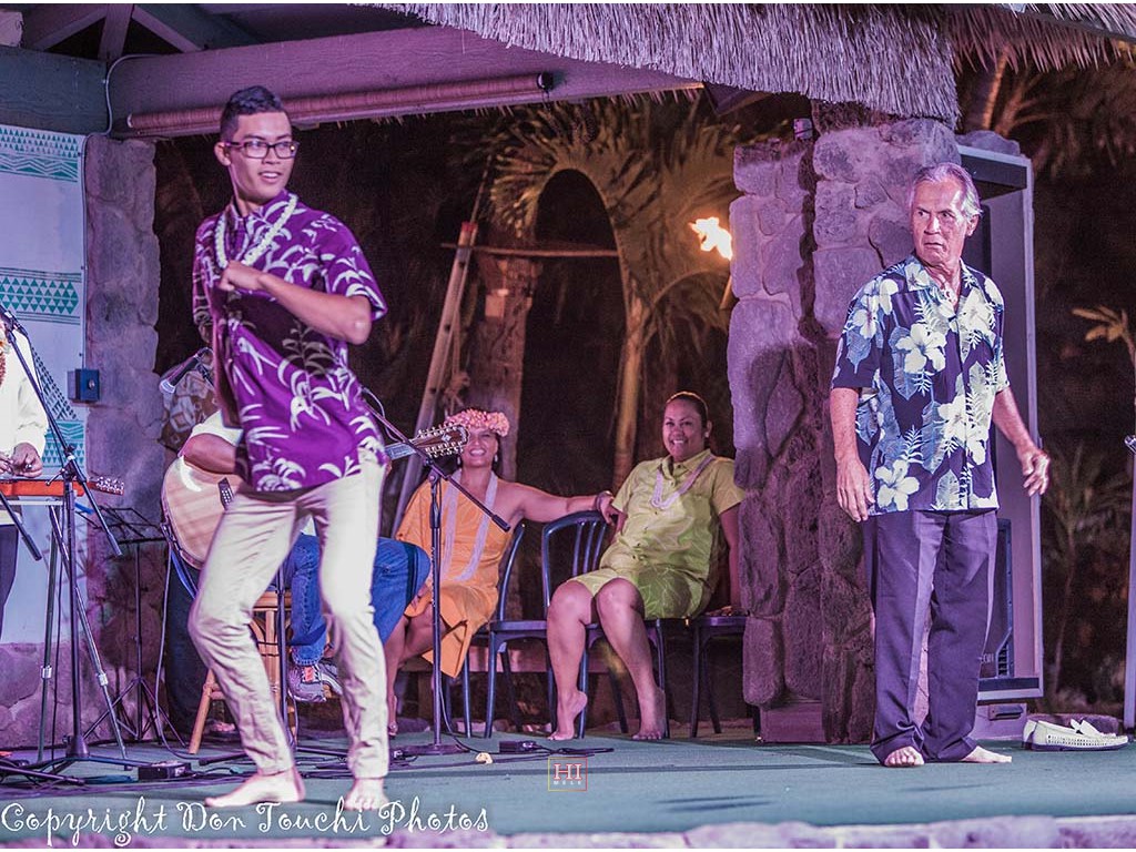 • Pono Li'i Murray and Kimo Kahoano doing hula to ''The Boy From Laupahoehoe'' while Maile Keawe Bryan and mom Leimomi Bacalso-Murray look on.