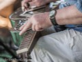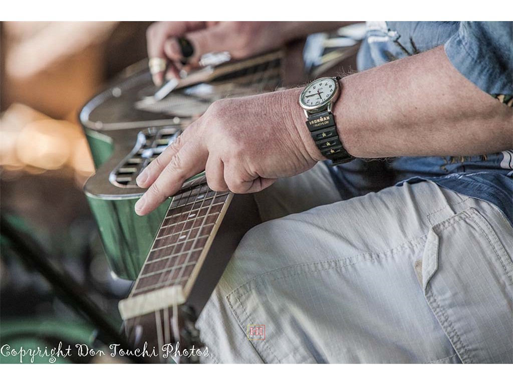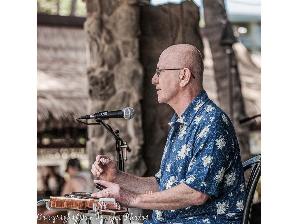 Dave ''DK'' Kolars playing a Weissenborn-type steel guitar he designed and built.