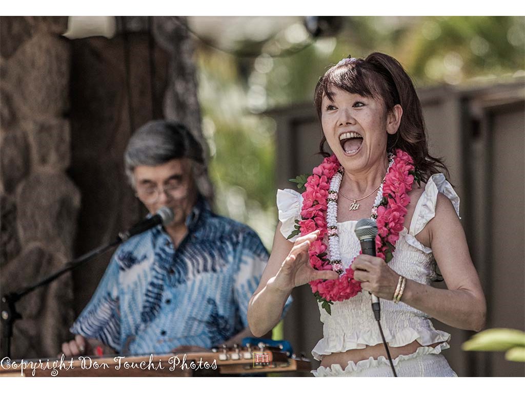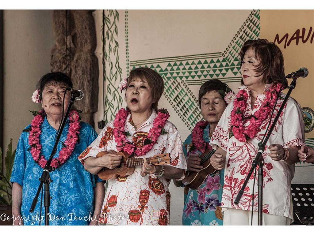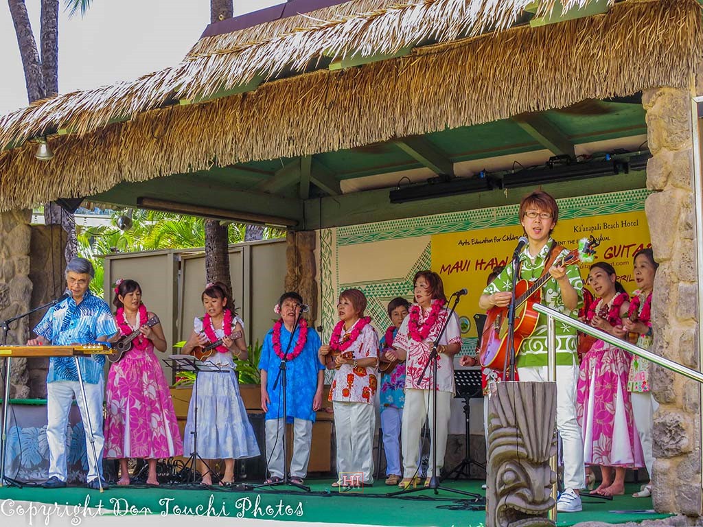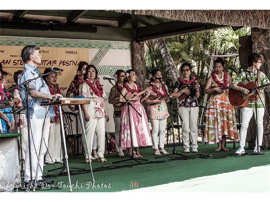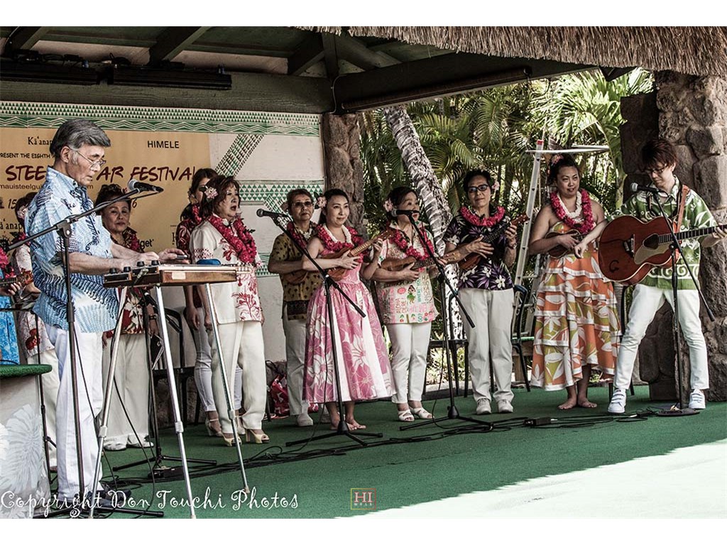 The Coco Music Society from Tokyo Japan performed on Friday's open stage. The group was led by steel guitarist Tetsuya Ishiyama (who also performed in Friday's Ho'olaule'a program) and included steel guitarist Makoto Shiraishi, musicians, singers, and dancers. The Society also gave an encore performance during Saturday's open stage program.