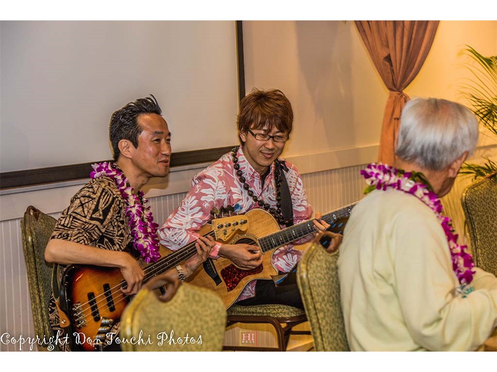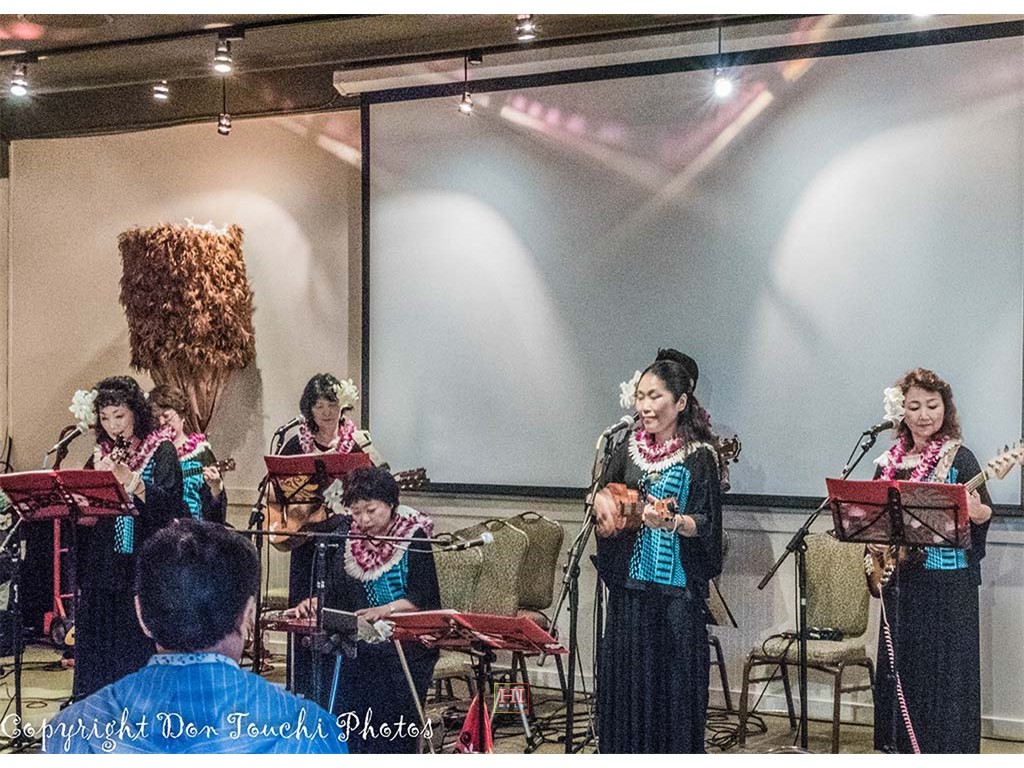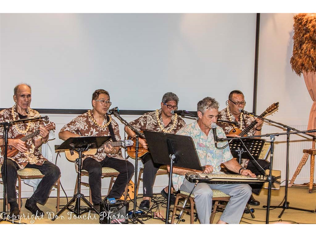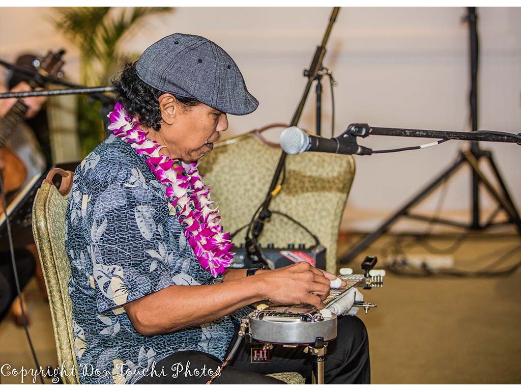The Saturday evening ho'olaule'a pageant featured steel guitarists Joel Katz, Greg Sardinha, Japan group Makana, Patti Maxine, Bobby Ingano, and Kiyoshi "Lion" Kobayashi. The pageant was moved indoors to the hotel's 'Ohana Room due to inclement weather.