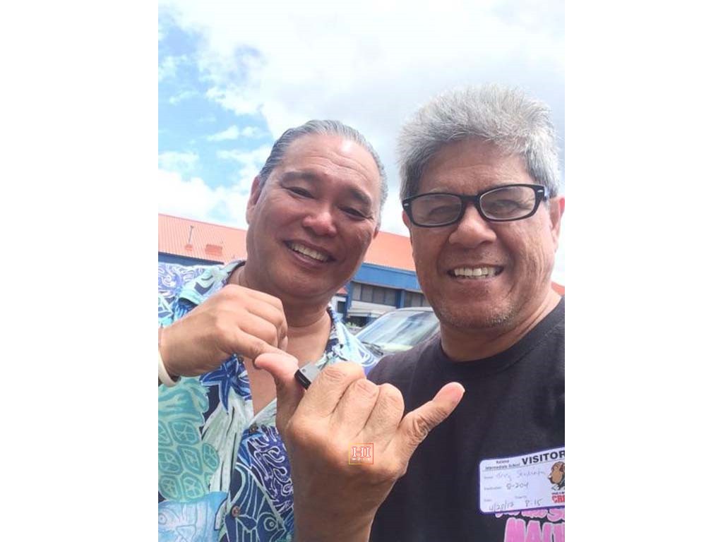 Kalama Intermediate School teacher Benny Uyetake and Greg Sardinha. Photo by Sandy Sardinha.