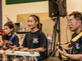 Joey provides a musical demonstration with Tai and Alan assisting.