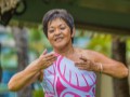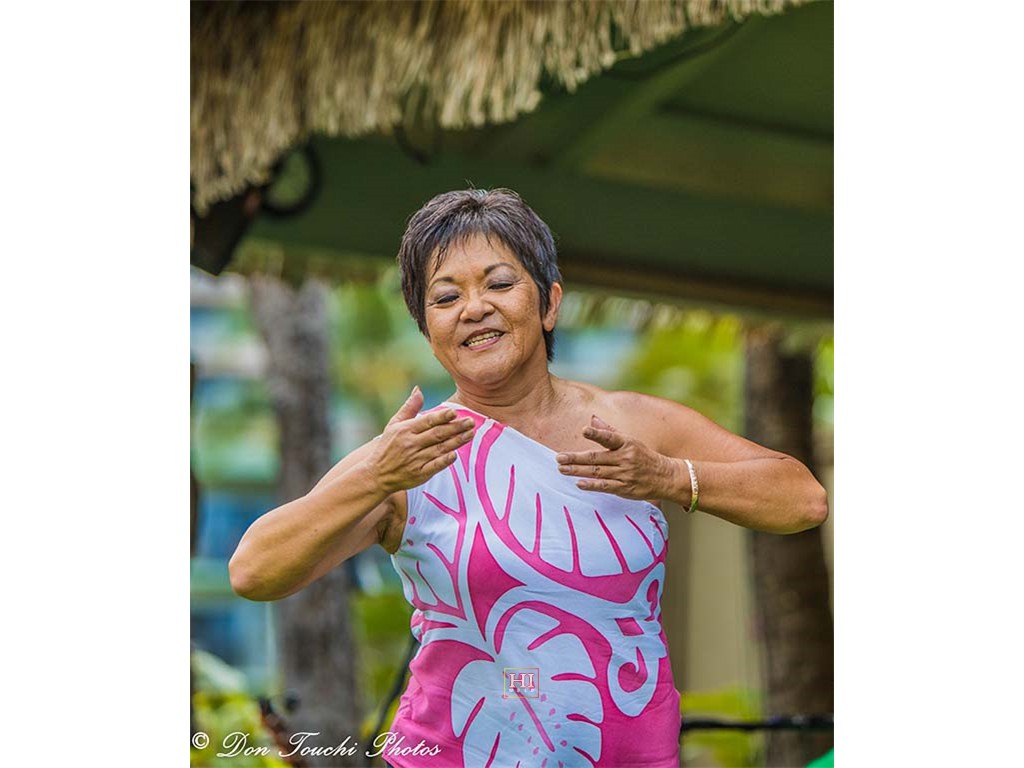Kathy Collins dancing a hula.