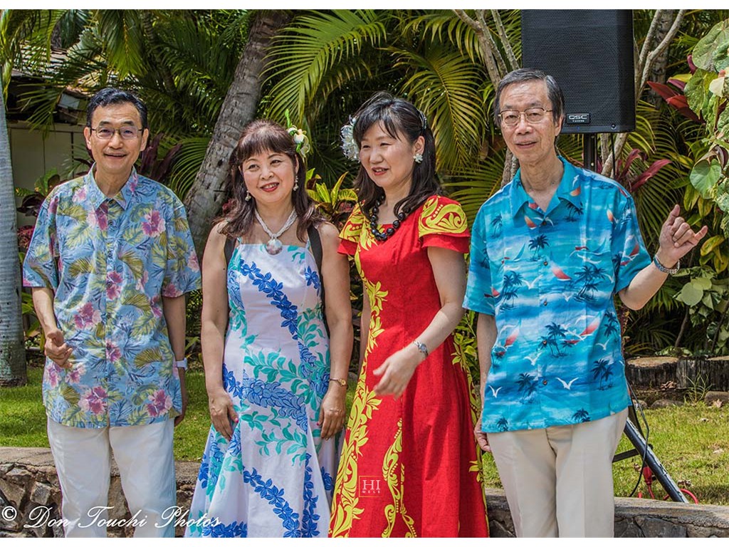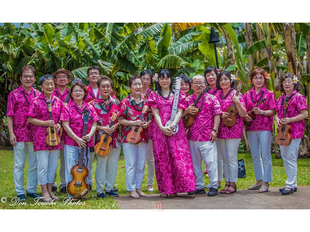Members of the Yokohama Hawaiian Music Academy. Leader Tadashi Arakawa is at the left.