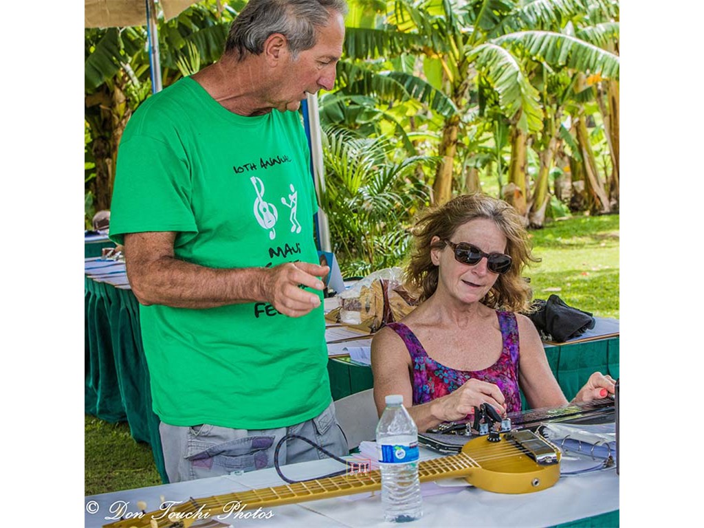 Teri Gorman and steel guitar demonstrator Daniel Tremblay.