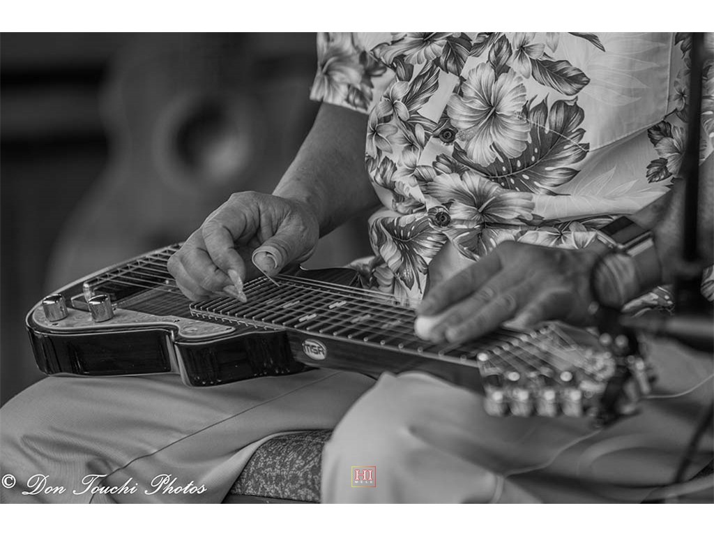 Lion Halau steel guitarists Nubuo Namata, Masako Wakamatsu, Sakae Machida, and Norio Usui.